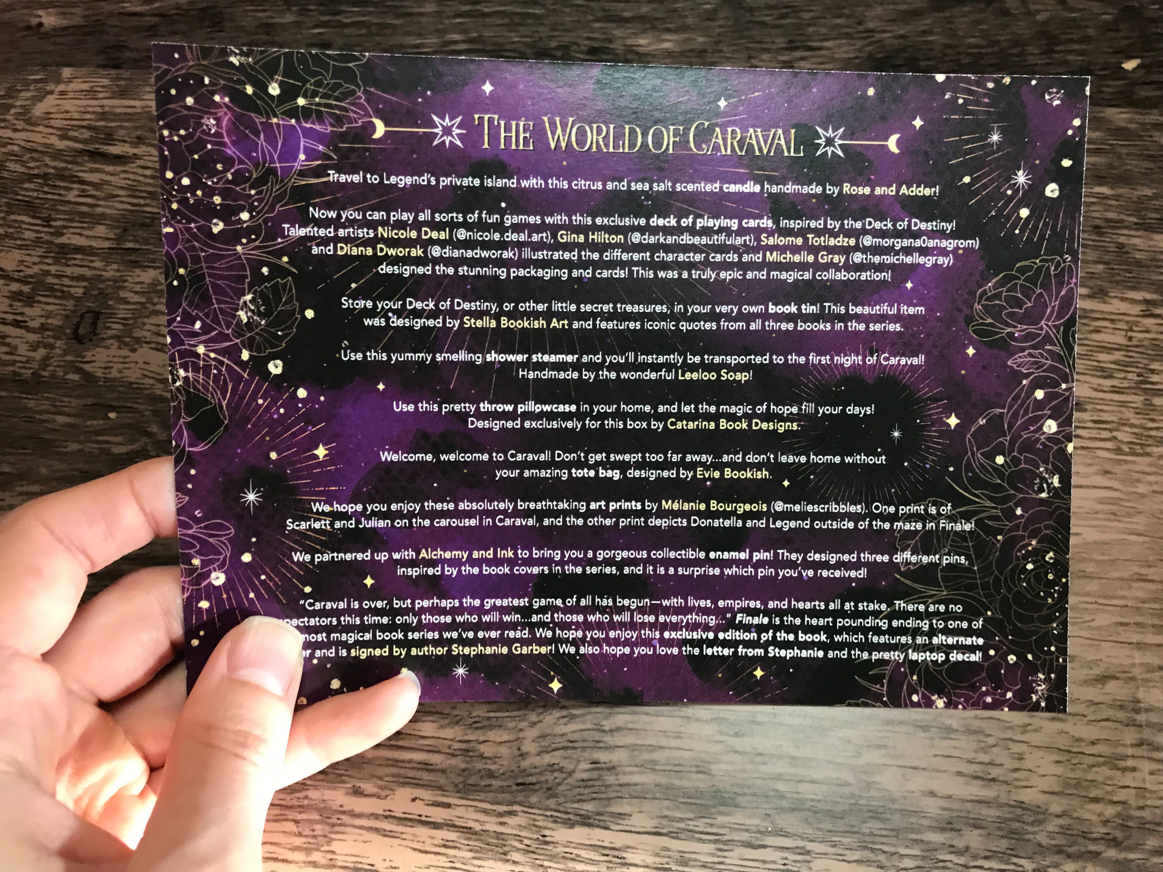 Owlcrate World of Caraval Spoiler Card Published by Megan Nicole I am a book nerd and Bull Terrier mom from the Houston area. I have a full time career in Healthcare but I am sure to make plenty of time for my hobbies and my Furbys. View all posts by Megan Nicole